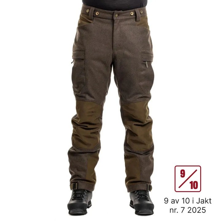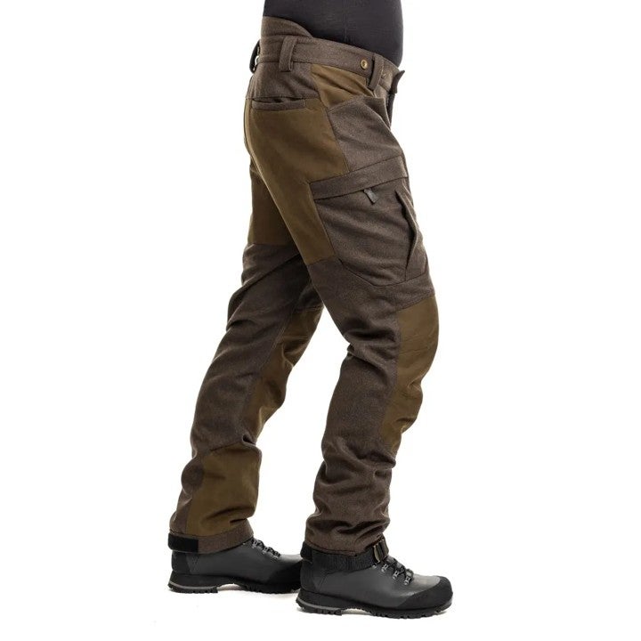 Puuvilla säilyttää eristysominaisuudet myös kastuessaan. Housut ovat eristävät ja lämpimät, lähes äänettömät, ja niissä on hyvät tuuletusominaisuudet.