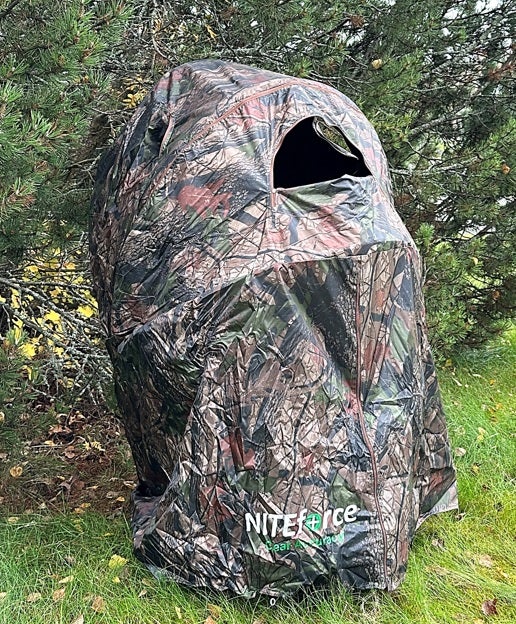 NITEforce kyttäystuoli on suunniteltu erityisesti valokuvaajille, metsästäjille ja kalastajille. Kyttäysteltta suojaa erinomaisesti tuulelta ja sateelta. Teltassa on täysin vedenpitävä ulkokangas. Ulkokankaan saumoissa ei ole teippejä.